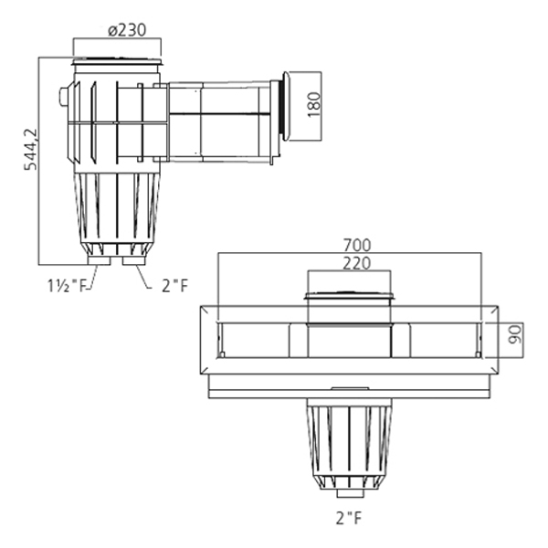 Hochwasserstandskimmer High75 schwarz ABS mit Messingbuchsen